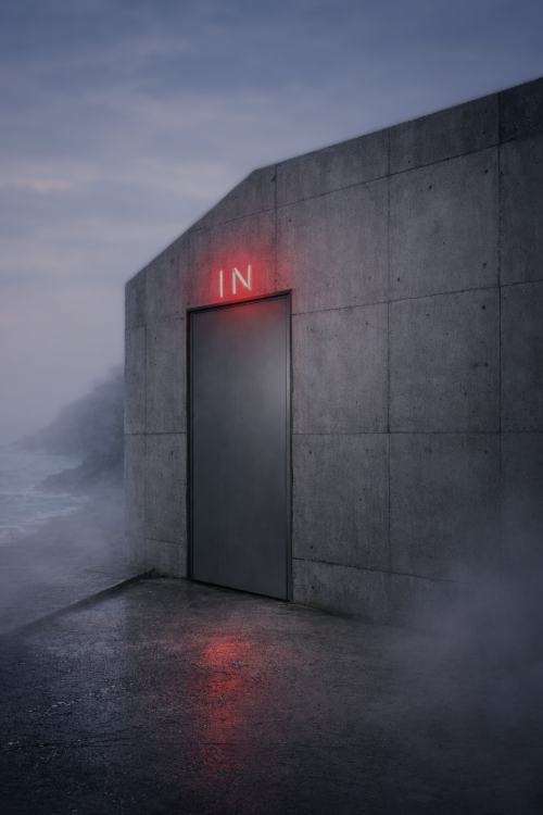 建物の内部は仄暗い赤い光が漂っていた。小さな部屋だった。何も無い空っぽの部屋の先には真っすぐ廊下が続いているようだった。ひんやりした徴臭い空気が溜っている。何となく背後できっちり閉まった扉を押してみる。扉が少し開いて、薄いけむりのような霧が忍び込んだような気がした。